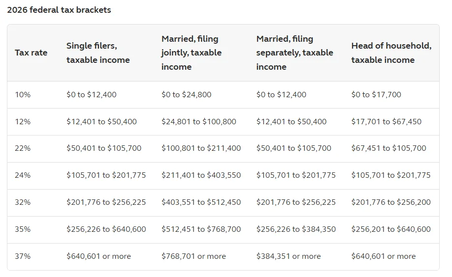 Your current marginal tax bracket is easy—use your current income and the table of federal tax brackets below.  Your retirement tax bracket is tougher to determine. To estimate that, you’ll need the following data: